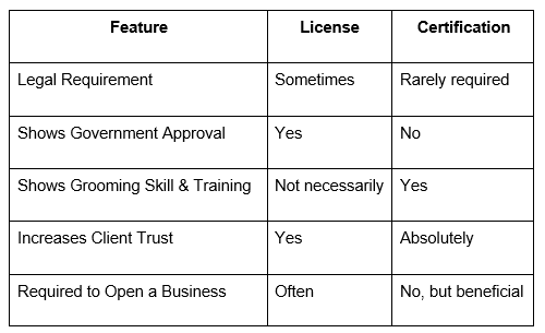 Dog Grooming License vs. Certification