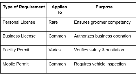 Once you have the necessary education and certification, the next step is securing legal approval to operate. Requirements vary depending on location and whether you plan to groom from home, offer mobile grooming services, or run a full salon.